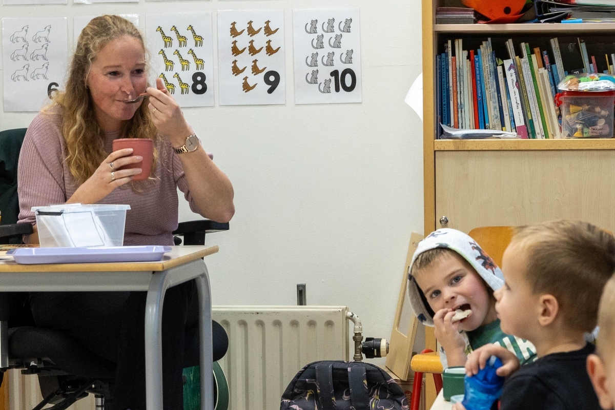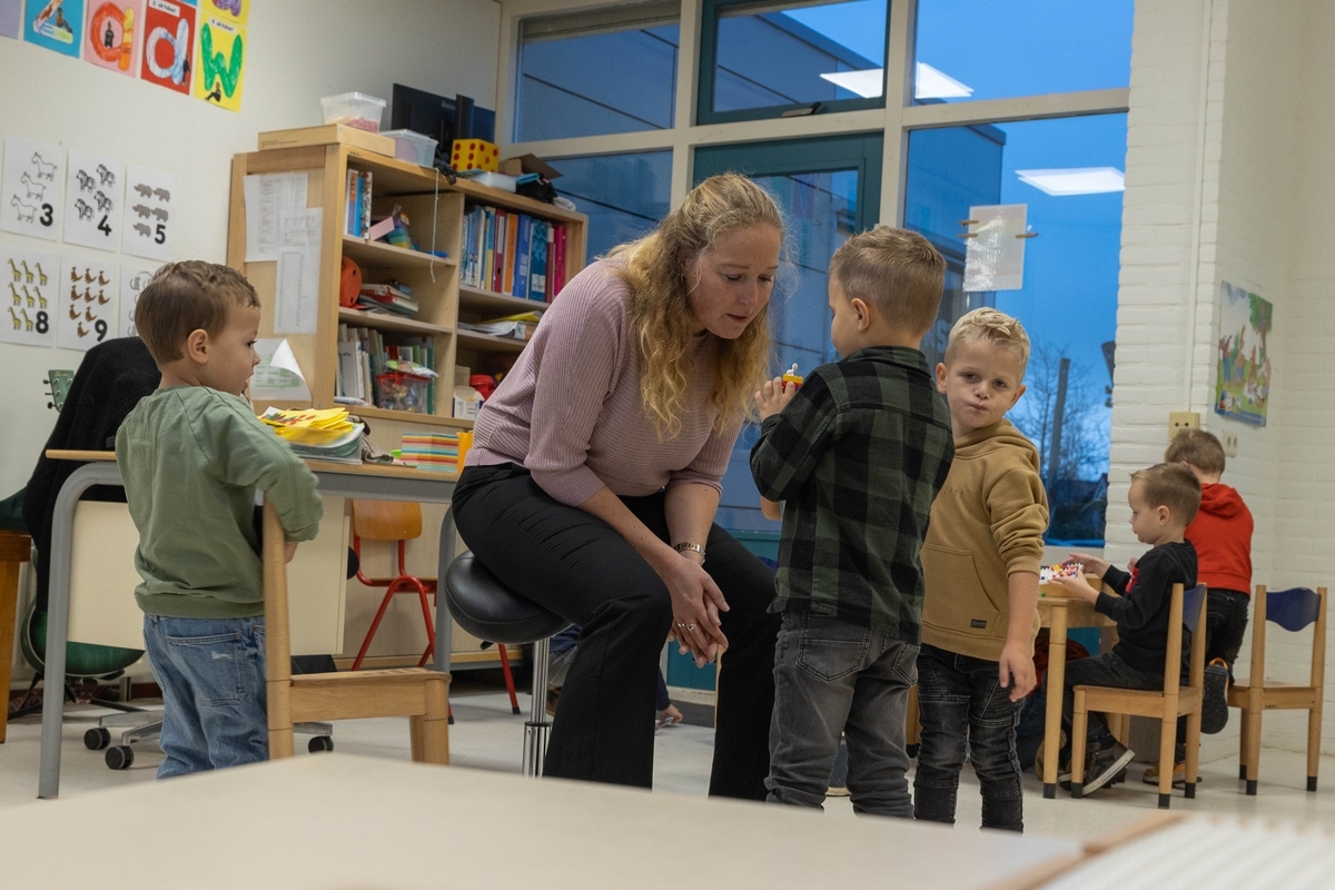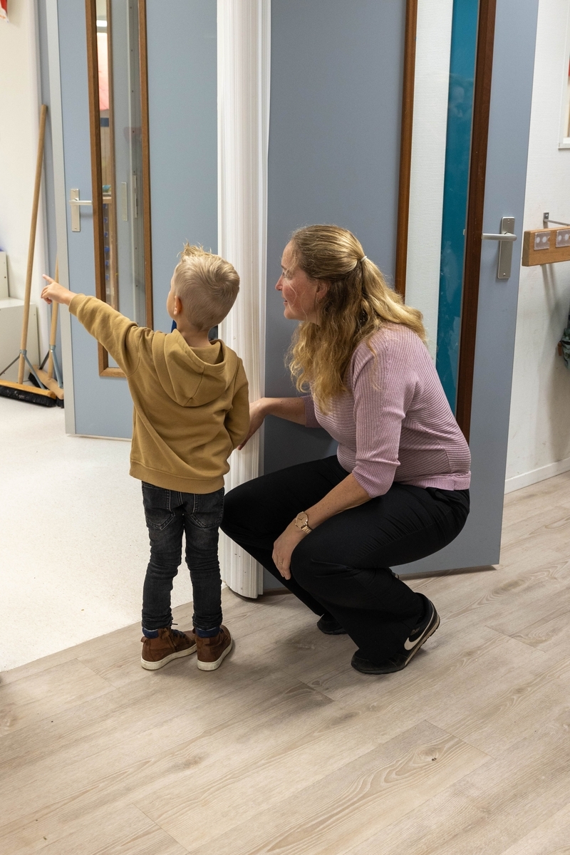 Petra luistert naar een jongste kleuter