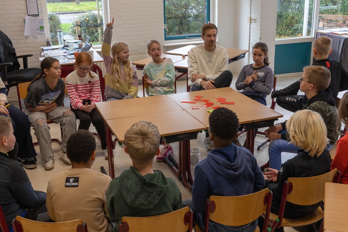 Gesprek in groep 7 over hoe het met de kinderen gaat (sociokring)