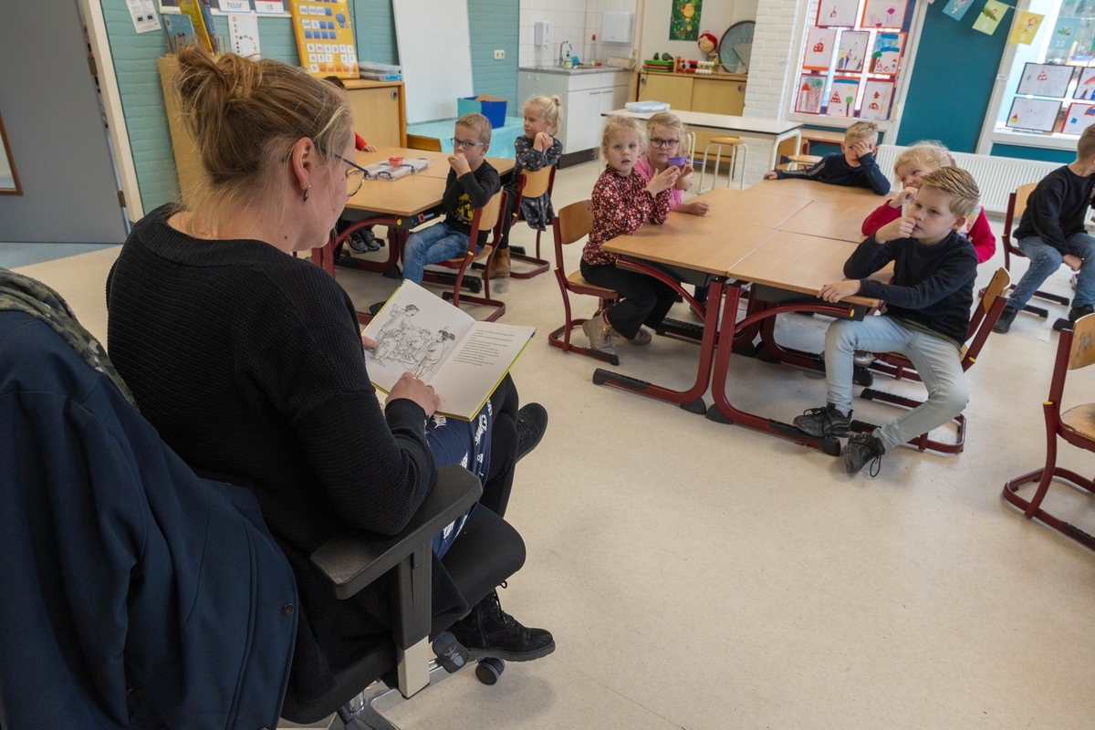 Jannie leest voor aan groep 3